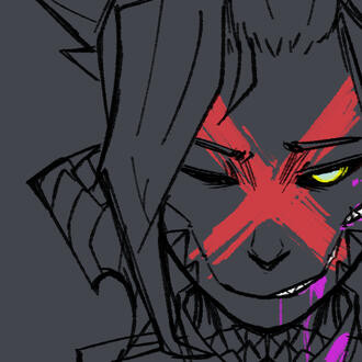 Intora is a self-alleged witch. She has also described herself as a hedge mage, a sort-of-kind-of-not-really-thaumaturge, and an appreciator of pilfering other magical disciplines' pockets for spare spell-lint.Her hobbies include: putting her monstrous face to use and eating food, procuring the food she's going to be eating, surveying places where she might be able to get good food, and collecting money to make sure she can always pay for food.She has many other hobbies, but most of the time, those are the only ones that will be relevant to people she meets while on the go. It is rare to see her "in the wild" unless one goes looking for her in the Shroud - it's far easier to meet her in an eatery, or, perhaps, at a campfire. She will welcome anyone, in any event - be they fellow restaurant patrons or world-weary travelers looking to get a bite to eat, be they people curious about her face or people looking for a skilled mage to make or break a curse.Perhaps you're in need of a witch. Perhaps you're looking for a fellow culinary tourist. Perhaps you're looking for someone who will hunt voidsent, or someone to sell voidsent parts to. Perhaps you appreciate monstrous things, or want to punch monstrous things in the face.Either way, Intora won't mind. She won't mind even the punching, really, though she might politely ask you to stop.Or run away.She doesn't bite, supposedly.Should one wish for a worrisome friend, a peculiar presence, someone who likes a good meal, or someone who appreciates the finer points of eating crystals and other things that should never be consumed by Spoken, Intora is always there.(Or she will be, if you think about her too hard. It's scientifically proven that she can smell it when someone remembers her too many times in a day.)